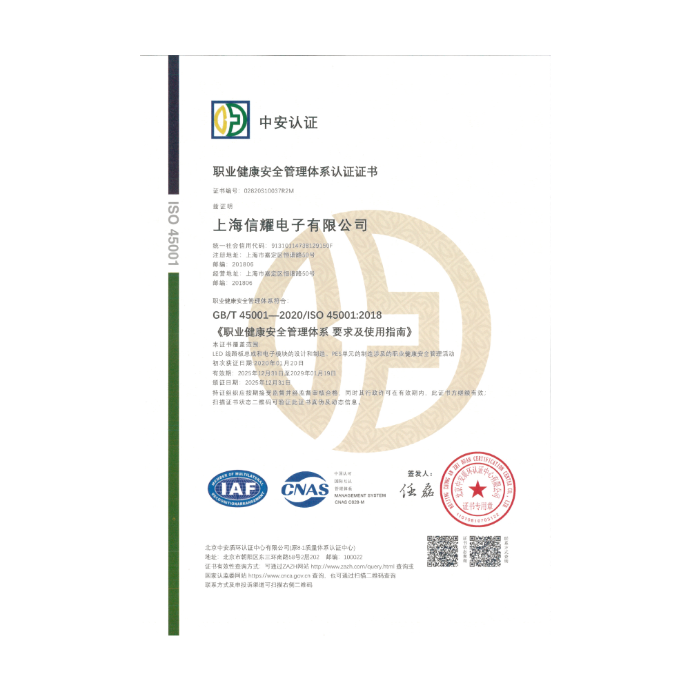 The company has a CNAS-certified electromagnetic compatibility and environmental laboratory, an authorized and recognized automotive LED packaging factory by LUMILEDS, and has passed the ASPICE CL3 automotive software process improvement and capability certification, IATF16949 quality management system certification, ISO140001 environmental management system certification, and ISO45001 occupational health and safety management system certification, etc.
